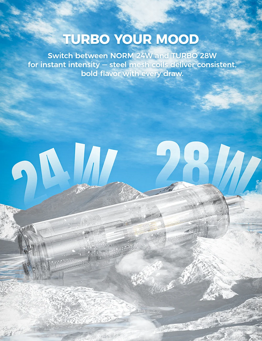 • Zwei Leistungsmodi: Wähle zwischen NORM (24 W) und TURBO (28 W) für unterschiedlich starke Züge.