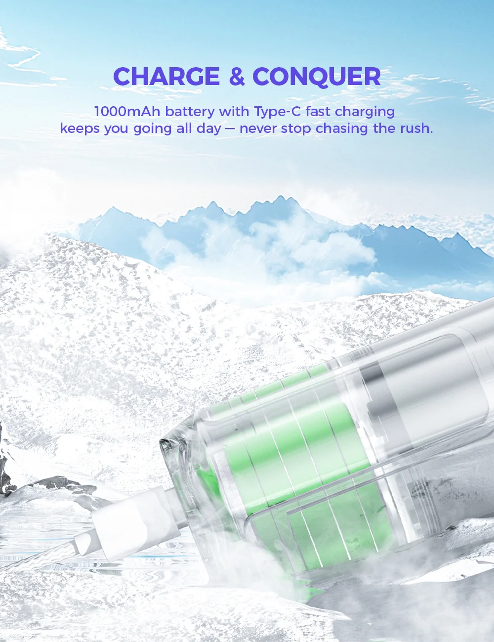 • Wiederaufladbarer 1000-mAh-Akku – für langanhaltenden Dampfspaß.